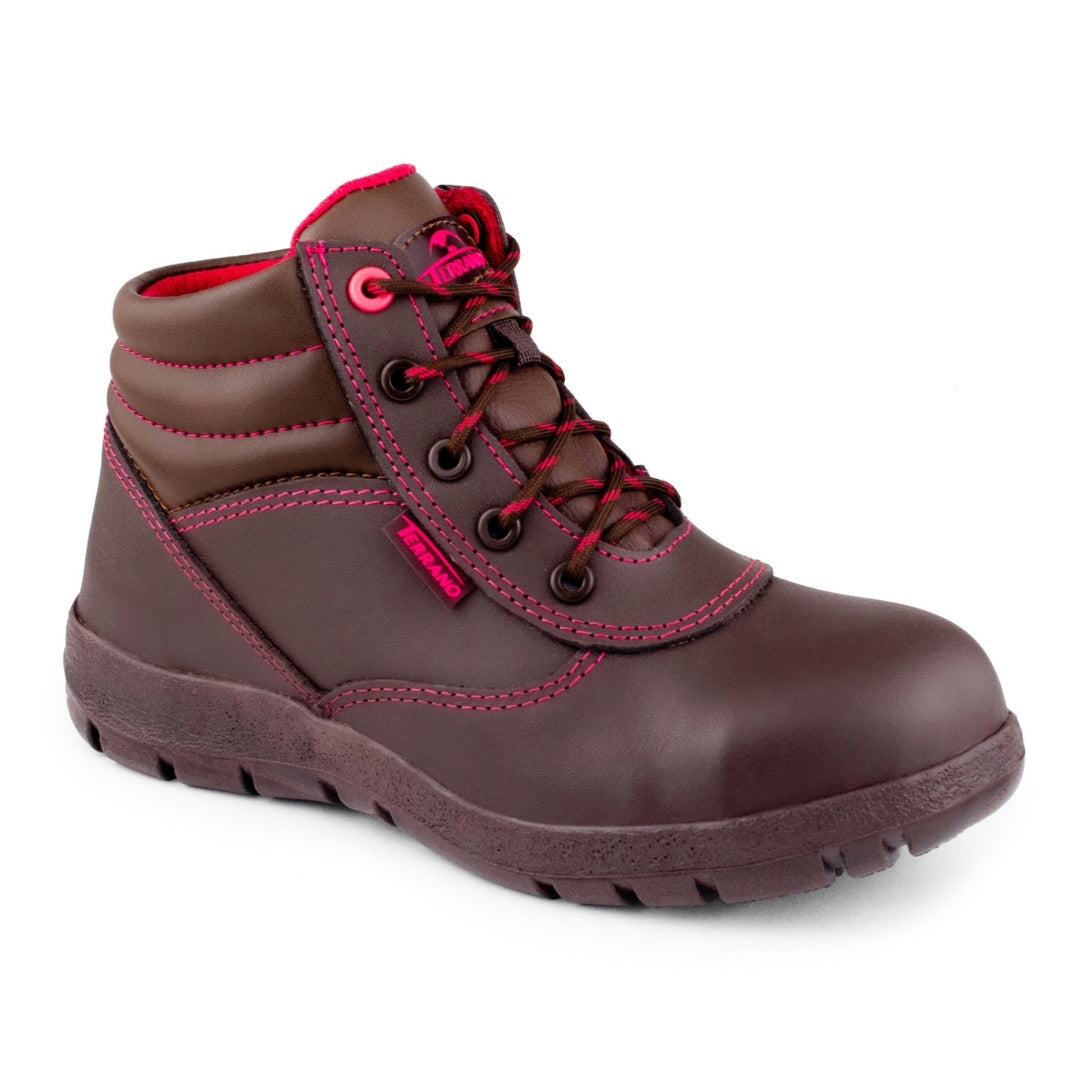 La Bota de Seguridad Ref. 7102 está diseñada especialmente para mujeres que necesitan un calzado seguro, resistente y cómodo sin renunciar al estilo. Su combinación en cuero café con detalles fucsia le da un toque moderno, ideal para quienes trabajan en entornos exigentes.